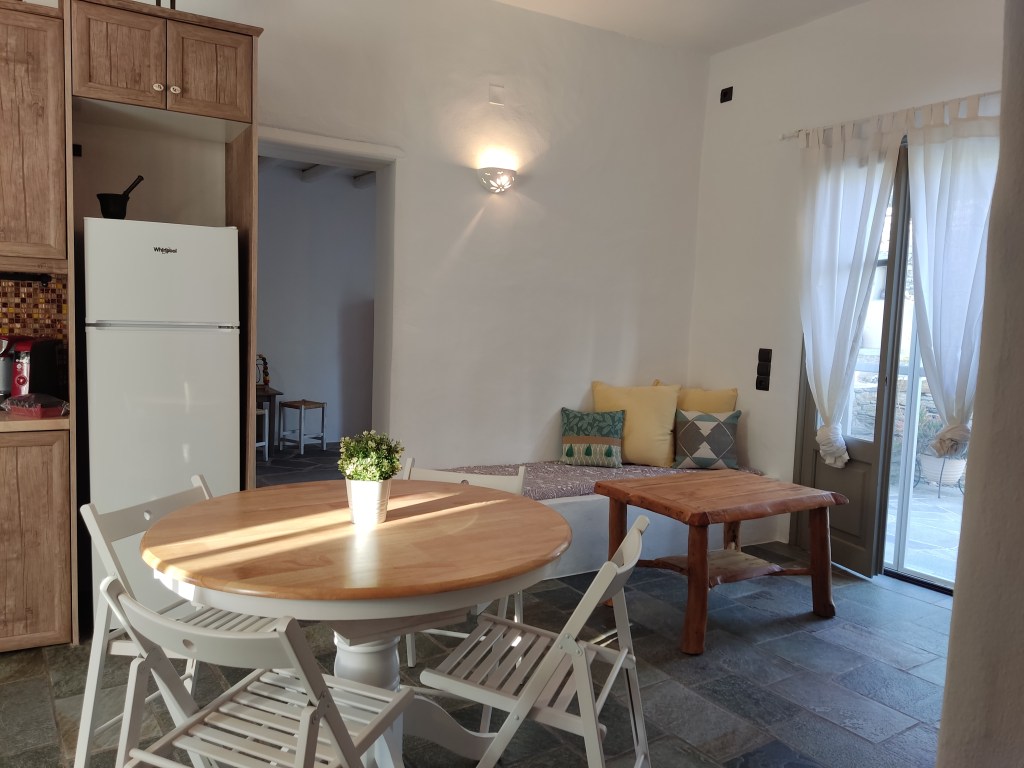 Melia House, is a holiday house in Platys Gialos of Sifnos not far from the famous beach. It can accommodate families or groups of up to 4 people. It has a bedroom with a double bed and an anatomical mattress as well as a second room with a two comfort beds. The kitchen and living area is comfortable, pleasant and properly equipped. The point is quite close to the beach, 250m in relative straight without a particular uphill slope but also in a very quiet place ideal for your relaxation and rest.