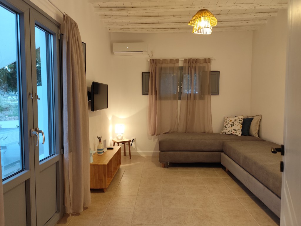 Melia House Superior, is a holiday home in Platys Gialos of Sifnos not far from the famous beach. It can accommodate families or groups of up to 4 people. It has a bedroom with a double bed with anatomical mattress, a living room that you can use it like a second bedroom with two beds / one big double bed or two sofas and a small kitchen that is pleasant and properly equipped. The point is quite close to the beach, 250m in relative straightness without a particular uphill slope but also in a very quiet place ideal for your relaxation and restaurants.